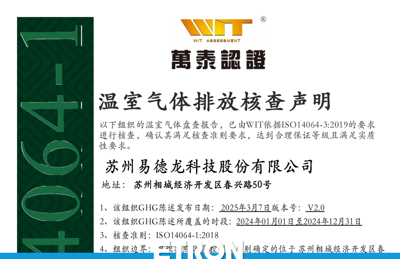 温室气体排放核查声明 ISO14064-1